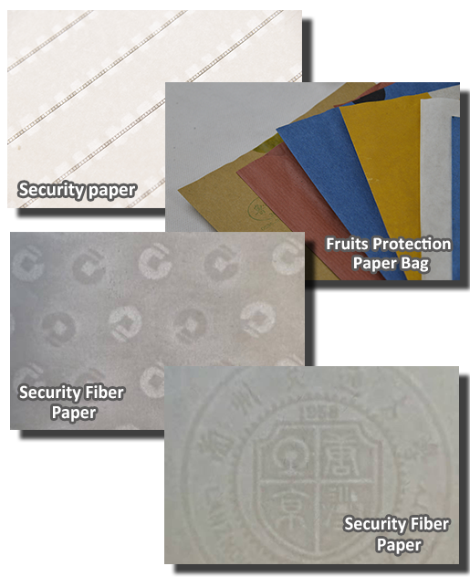Our main products are security paper, security carbonless paper, fruit protection paper bags. We make security paper for China 27 provinces, cheque paper and certificate paper for more than 70 countries all over the world.